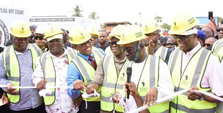 1st left, the deputy governor of Delta State Monday Onyeme, 2nd left, the Hon. Minister of Works Engr. Nweze David...