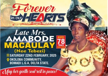 It was a moment of reflection as family, friends and well-wishers recently gathered to bid a heartfelt farewell to the late Mrs. Amabede Macaulay, of Okoloba Communitty, Bomadi Local Government Area, of Delta State.