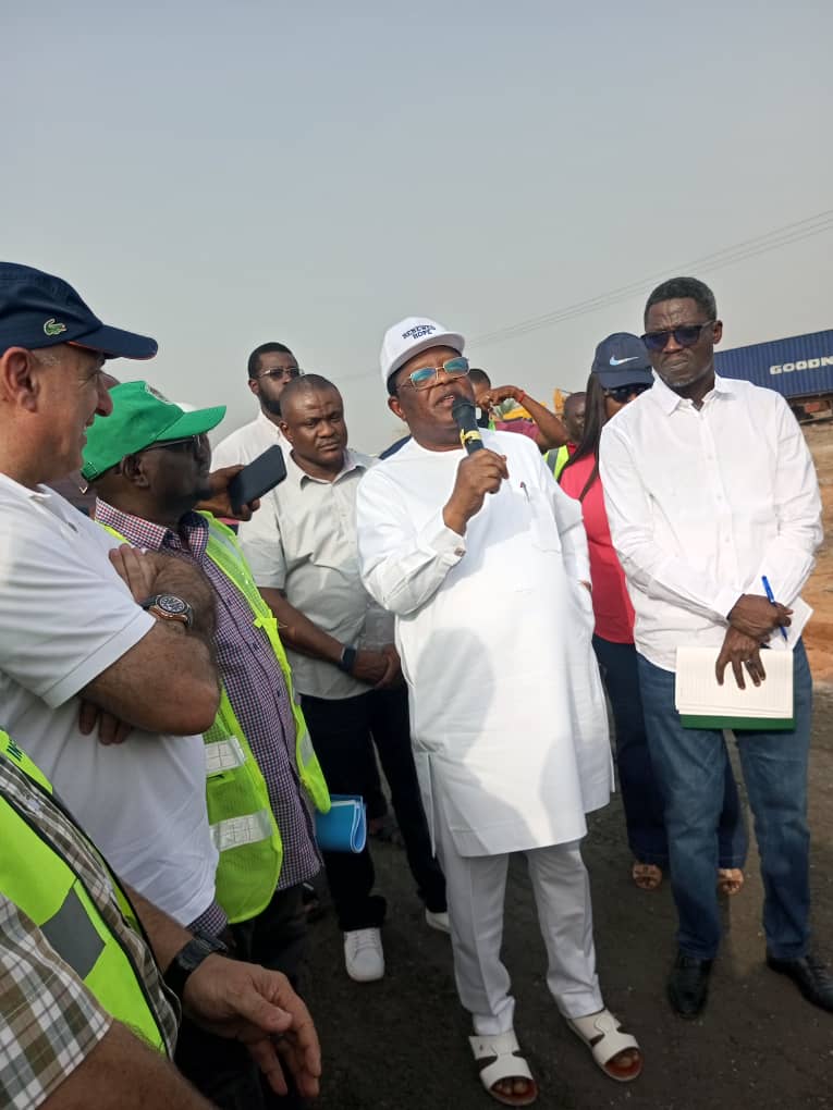 The Minister of Works, H.E., Engr. (Sen.) David Umahi inspects the ongoing construction of Abuja-Kaduna -Zaria-Kano, Section I (Abuja-Kaduna) on...
