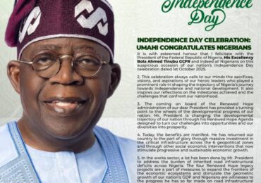 “As we celebrate a new dawn in our journey of nationhood, may the spirit of freedom and unity continue to inspire every Nigerian to strive for a brighter future and may the liberties we cherish inspire us to keep the integrity of our nation. Let’s take a pledge to protect the peace, diversity, harmony, and unity of our great nation.