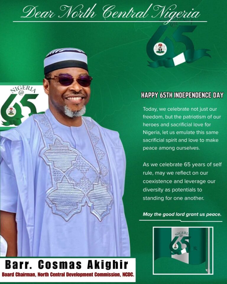 Bridget Tikyaa As Nigeria marks its 65th Independence Anniversary, the Chairman of the North Central Development Commission, Barr Barr. Cosmas...