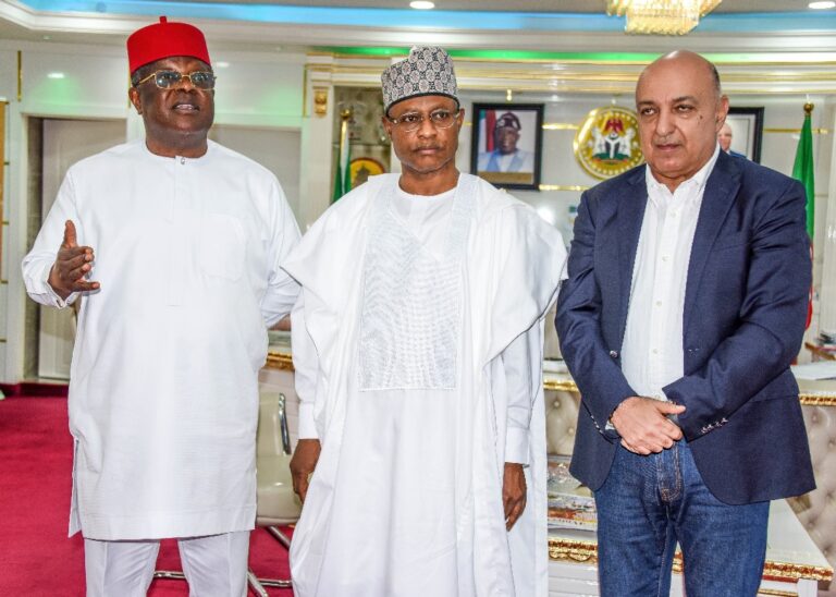 From L-R: The Honourable Minister of Works, Engr/Sen. David Umahi, The Executive Governor of Kaduna State, Uba Sani, The MD...