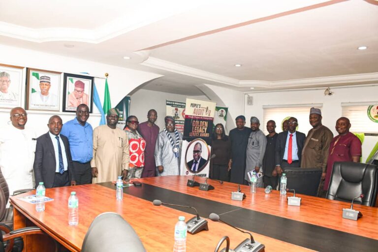 Office of the Surveyor General of the Federation management staff and Staff of the Peoples Auditor Magazine during the magazine...