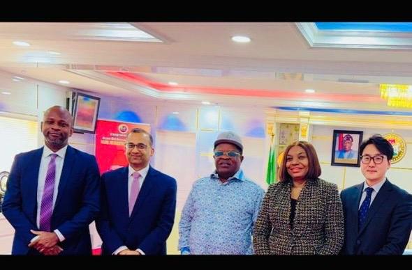 3rd right, the Governor of Cross River State His Excellency Sen. Prince Bassey Otu, 4th right, the Hon. Minister of...