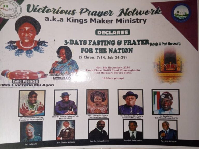 .... President Tinubu, Fubara, Ogbuku, Dr. Ishaya, others expected ... Nigeria needs divine intervention, says host, Evangelist Agori By Adanu...