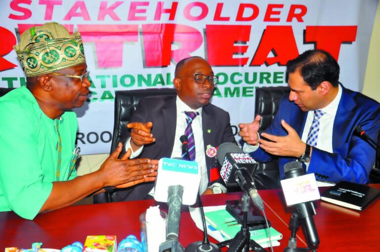 L-R: Director-General of the Lagos State Public Procurement Agency (PPA), Mr. Onafowote Fatai Idowu; Director-General of the Bureau of Public...